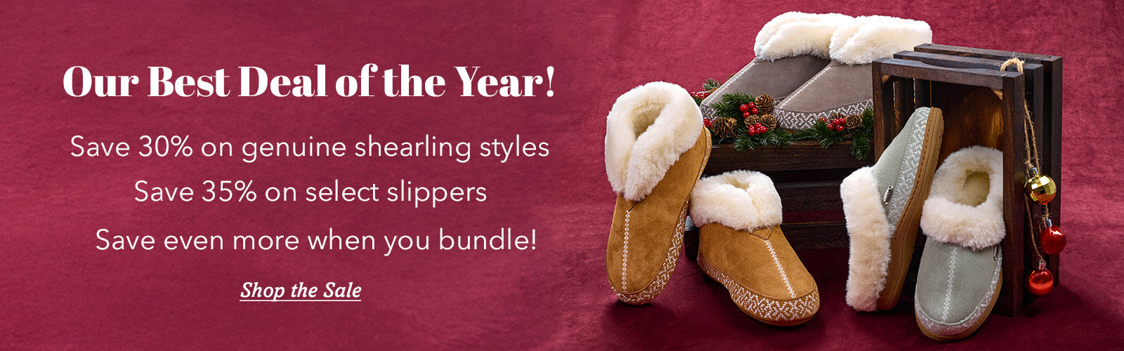 Shop CollectionGenuine sheepskin slippers with thick and cozy shearling lining and a superior comfort experience.