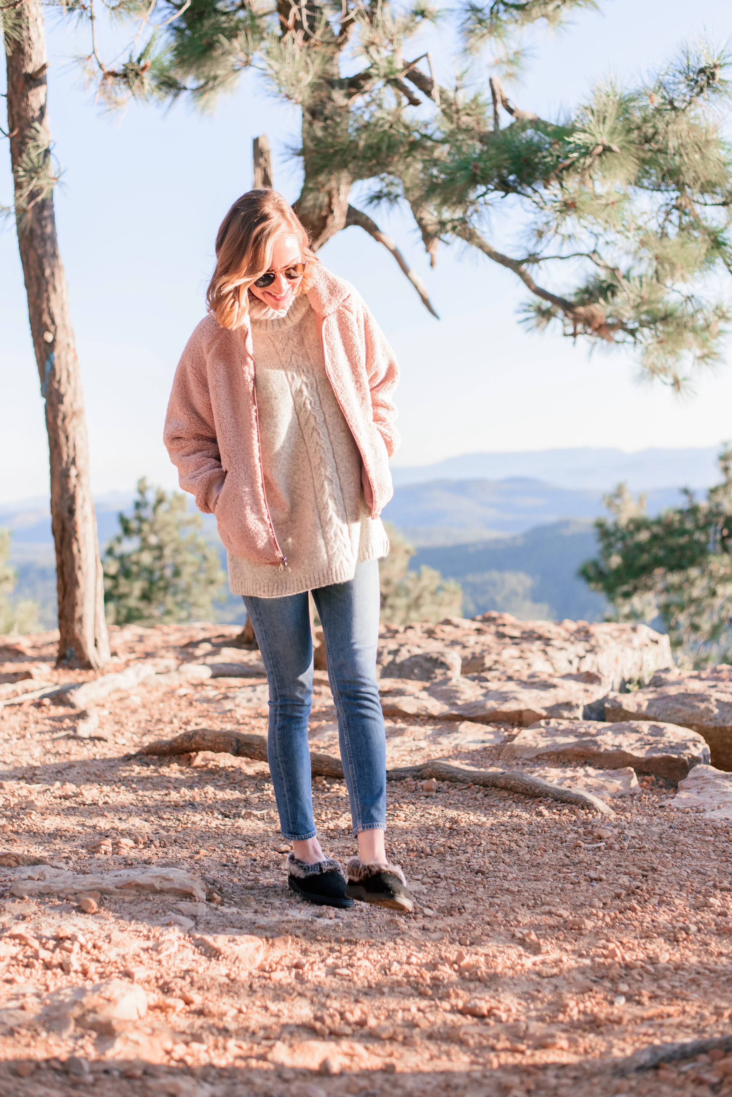 The moment is finally here! Today, we’re sharing our fall bucket list full of festive fall activity, fun outdoor adventure, and cozy fall moments at home galore. Dare I say that this season’s list is my favorite of this year’s bucket lists here on the blog? One of the reasons I love this season so much is that there's endless opportunity for outdoor adventure and exploration, paired with so many cozy, memorable moments at home. That’s pretty much my recipe for bliss! Which is why I’ve fallen so hard in love with these Chinchilla Collar Slippers from Acorn, a footwear brand that really shoots straight to my cozy-loving heart! These versatile beauties are not only helping me kick off my seasonal bucket list in style, they’ll keep me comfy and cozy for my fall activities—from outdoor adventure, to travel, to cozy lounging of all kinds, all season long!