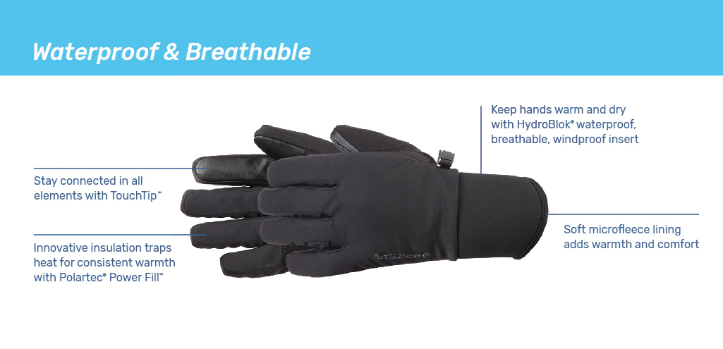 Keep hands warm and dry with HydroBlok® waterproof, breathable, windproof insert