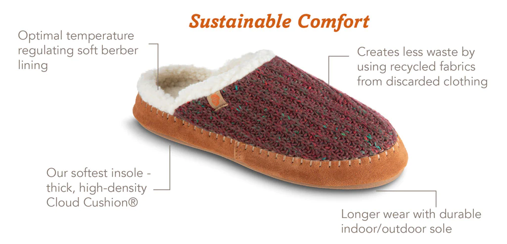 Cloud Cushion® features a sophisticated insole, crafted with several layers of premium cushioning for exceptional, enduring comfort — a signature innovation found in Acorn slippers.