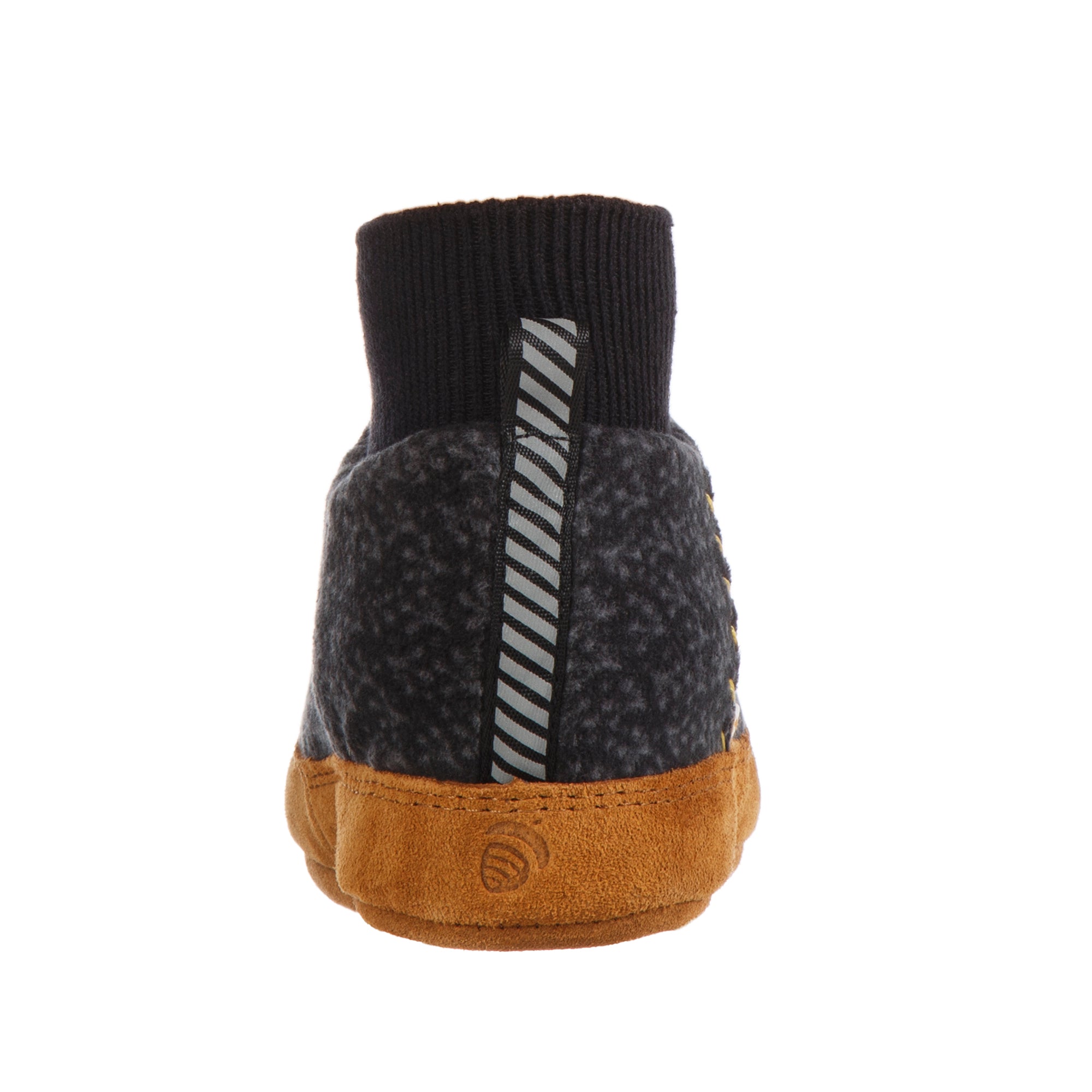A supple, genuine suede sole provides quiet traction and enduring durability, while matching suede guards at the toe and side add protection without compromising softness. The cotton-blend ankle cuff gently hugs the foot for a snug yet breathable fit, and a reflective heel loop makes on-the-go wear effortless—whether you're heading to the cabin or curling up indoors.
