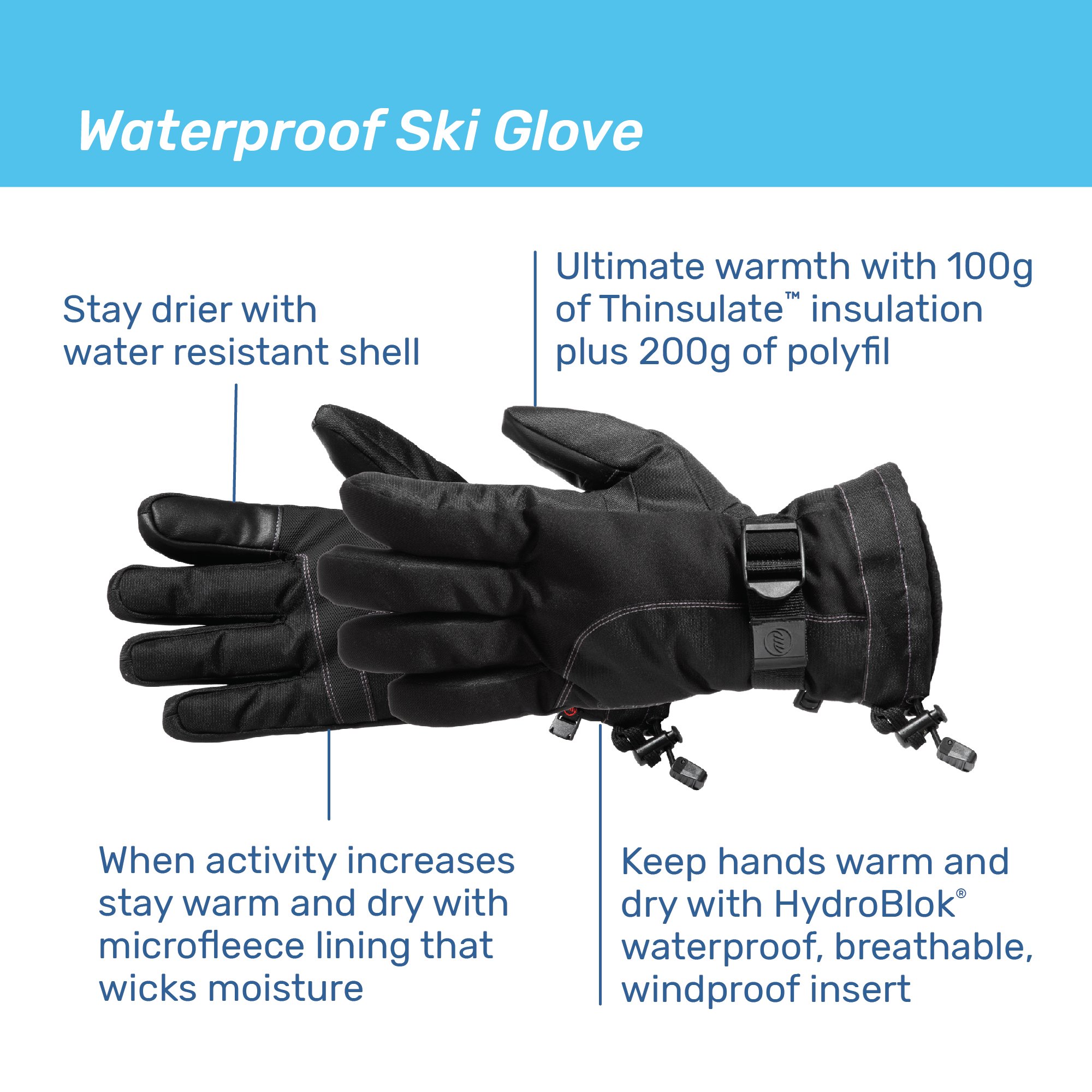 Water resistant outdoor glove for your cold weather activities; skiing, sledding, ice skiing or relaxing by the fire pit.