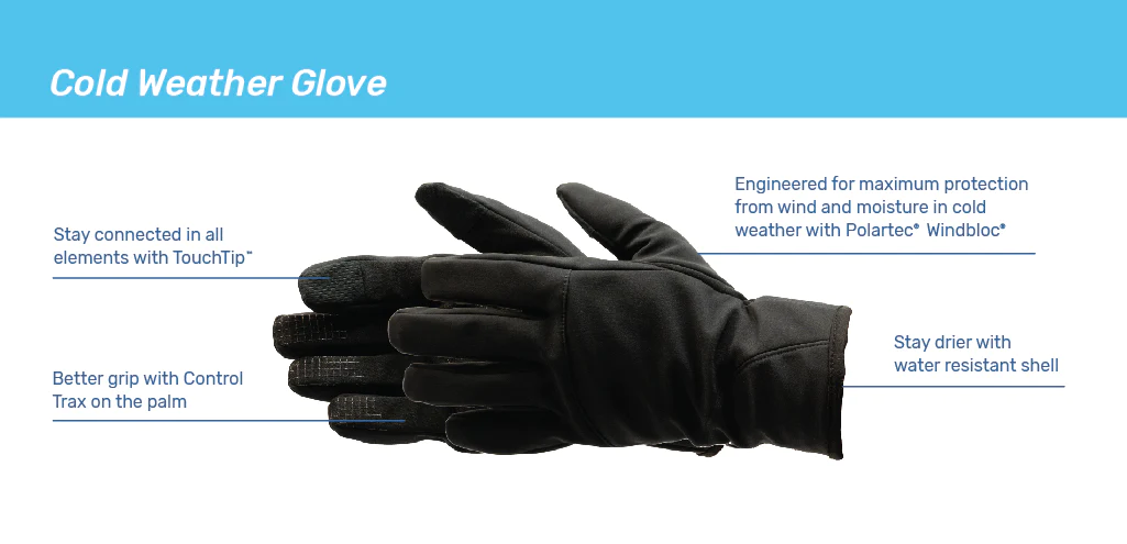 TouchTip™ technology in the finger tips to stay connected in all elements