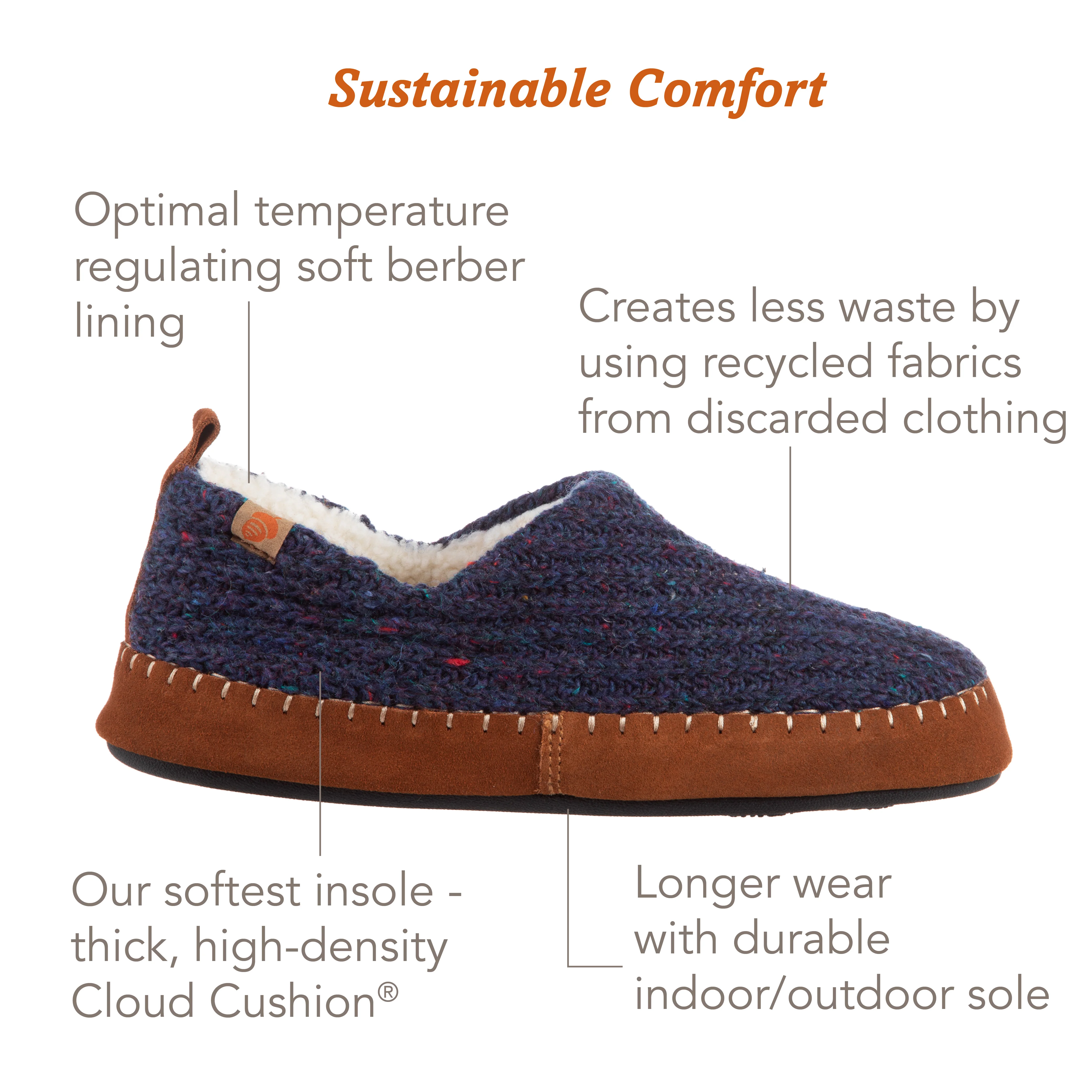Step into a moccasin that honors craftsmanship and delivers everyday performance. A knit yarn upper pairs with a plush berber lining to provide breathable warmth and soft insulation—perfect for cool mornings or fireside nights.