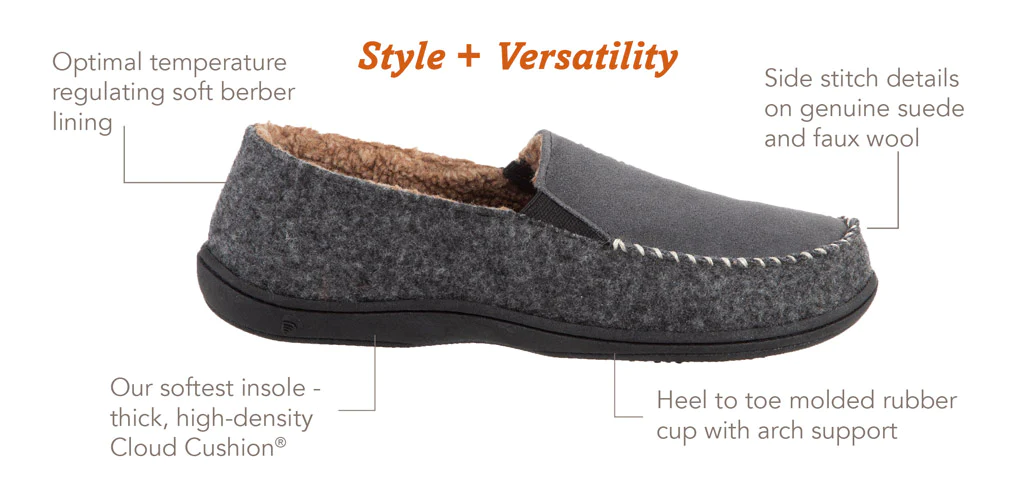 Underfoot, the Cloud Cushion® insole sets a new bar for softness. More advanced than memory foam, it features Acorn® quick-recovery layers with exceptional density and rebound. A full rubber outsole from heel to toe offers shoe-like traction, while built-in arch support ensures it feels as indulgent as a slipper, yet wears like your favorite everyday footwear.