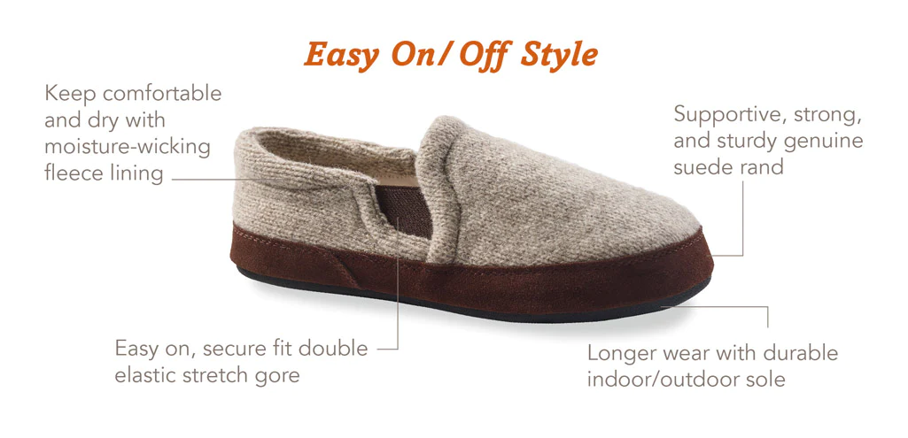 Available in a variety of rich materials for the upper – including Italian tweed, cozy wool blends, and soft knits—each chosen for texture, warmth, and distinctive character. Inside, plush berber sock linings envelop the foot in thick softness, while fleece-lined interiors wick away moisture for lasting comfort.