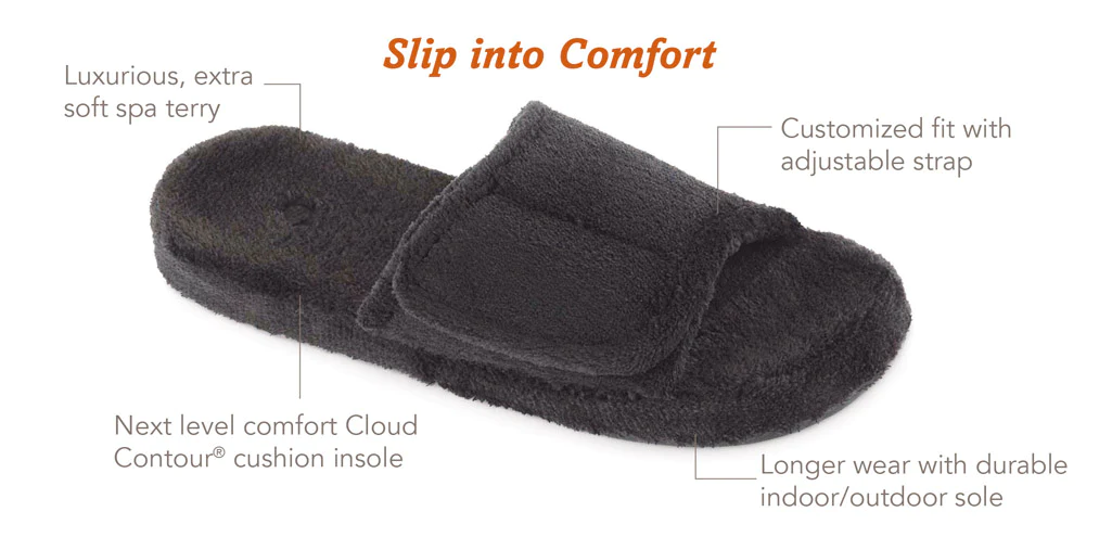 Lined with ultra-soft spa terry, this slide brings the comfort of a spa to your feet while wicking away moisture to keep them dry and fresh. Machine washable and built to last, it holds its plush feel wear after wear.