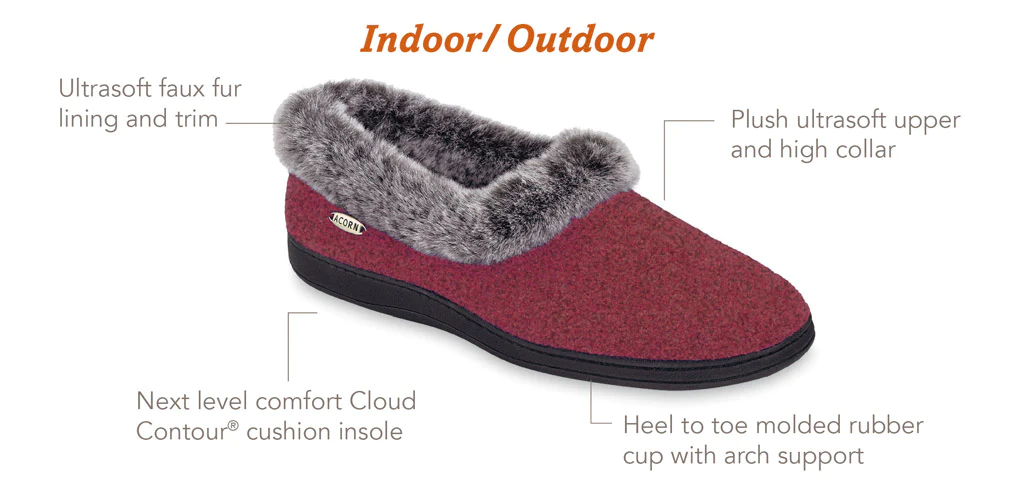 Inside, your feet are embraced by ultra-soft faux fur lining that extends from heel to toe and wraps with top, creating a plush cocoon of warmth. At the heart of the slipper lies our signature Cloud ContourĀ® footbed ā a multilayer, quick-recovery AcornĀ® foam that delivers elevated arch support and next-level cushioning, surpassing traditional memory foam in both feel and performance.