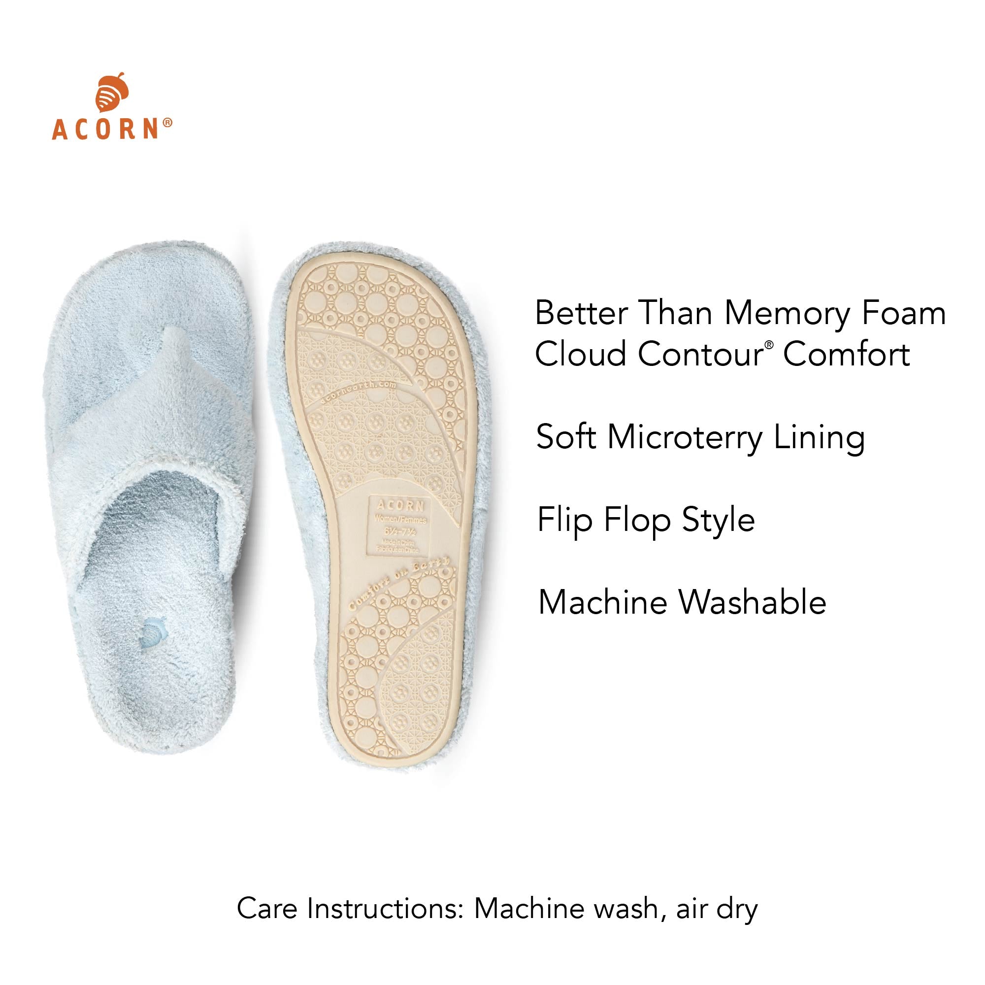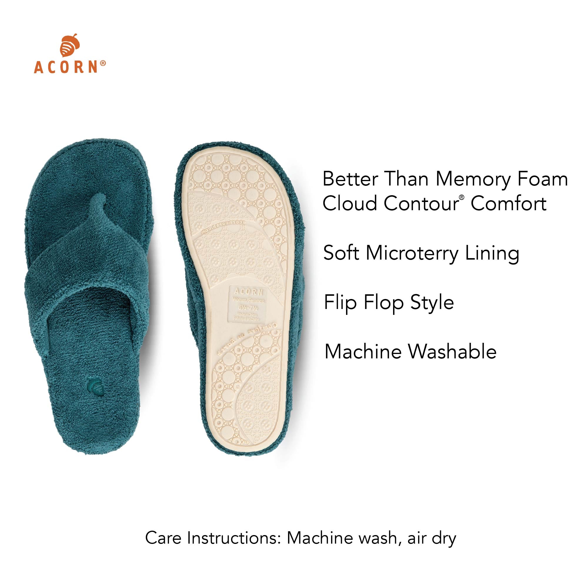 Engineered for lasting comfort, Acorn’s Cloud Contour footbed features multiple layers of premium cushioning, enhanced arch support, and a structured heel cradle. Offering a comfort level that outperforms traditional memory foam, the Spa Flip Flop is a worthwhile investment for those who seek superior quality, support, and style.