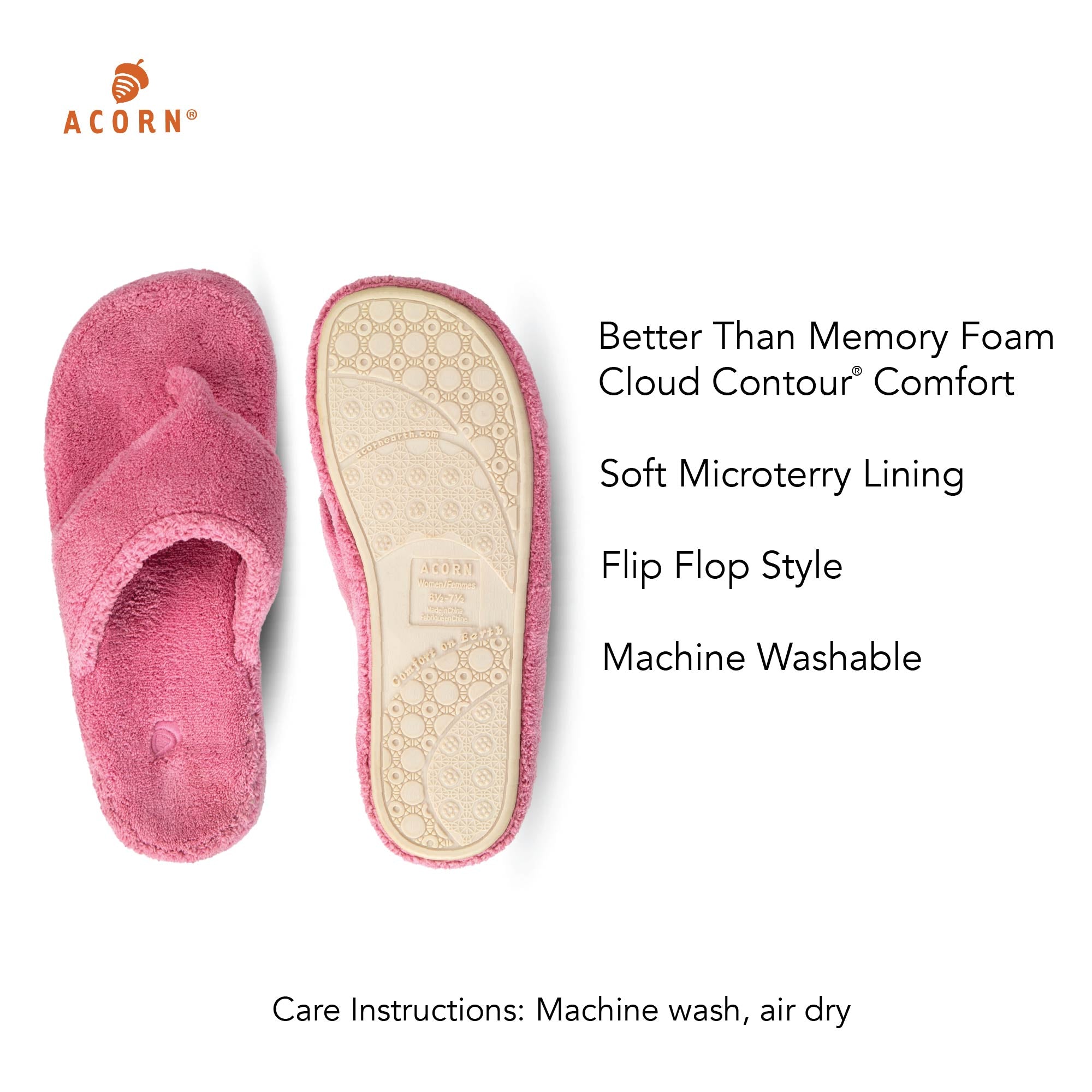 Transform your everyday routine with Acorn’s Spa Flip Flop, featuring the signature Cloud Contour Cushion. Designed as the ultimate companion for spa days, pedicures, poolside lounging, or post-shower relaxation, these flip flops wrap your feet in indulgent comfort, turning any moment into a luxurious escape.