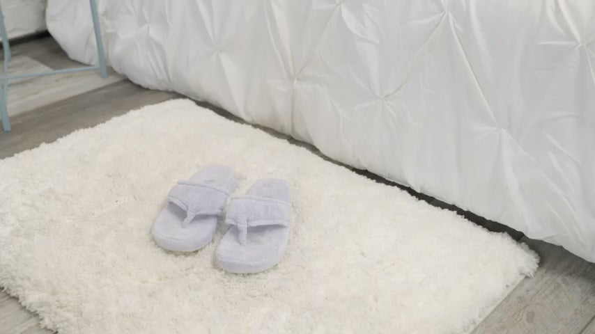 Crafted from rich, spa-soft microterry, these flip flops deliver plush softness with every step. A textured, water-resistant rubber sole ensures confident footing indoors and outdoors, combining elegance with practical durability for wherever the day takes you.
