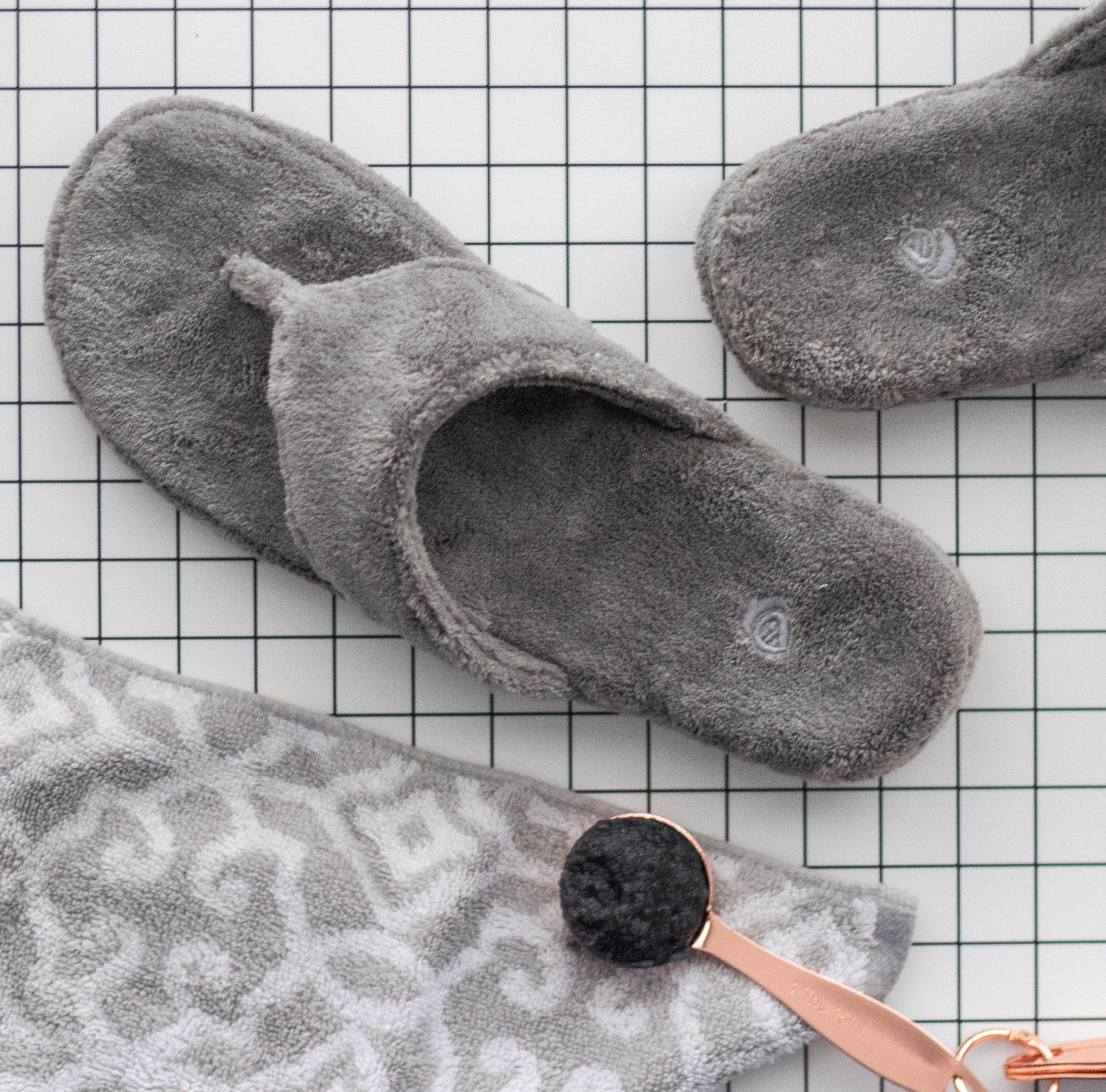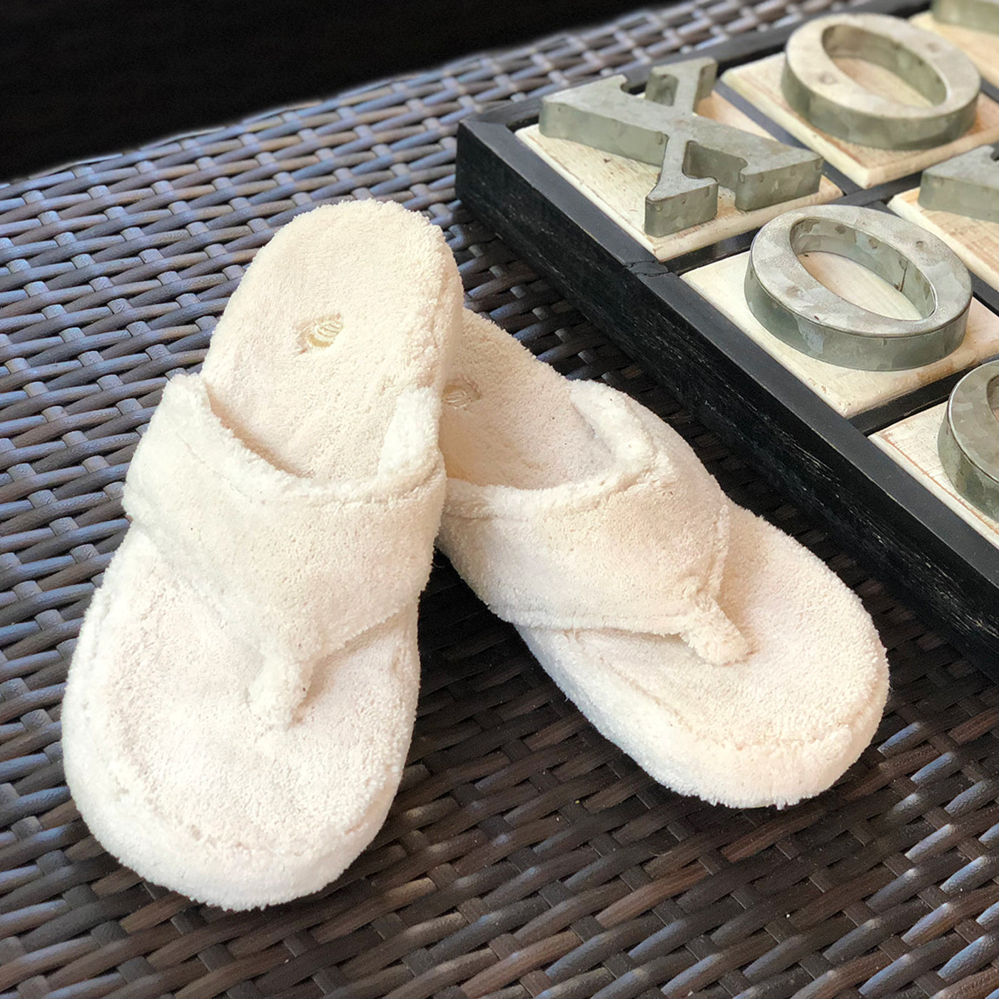 Crafted from rich, spa-soft microterry, these flip flops deliver plush softness with every step. A textured, water-resistant rubber sole ensures confident footing indoors and outdoors, combining elegance with practical durability for wherever the day takes you.